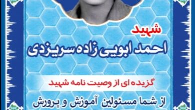 وصیت شهید احمد ابویی زاده سریزدی